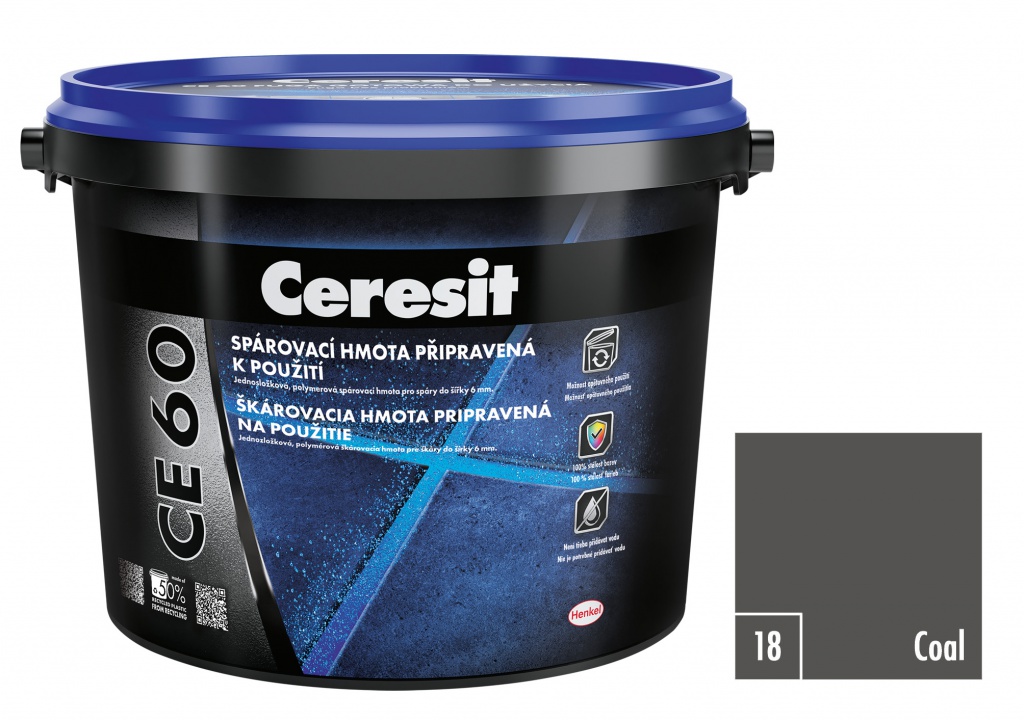 - pro použití v interiéru Ceresit CE 60 neobsahuje cement a nemíchá se s vodou. Nevznikají žádné problémy se změnou barvy, výkvěty nebo prasklinami v důsledku tuhnutí cementu.